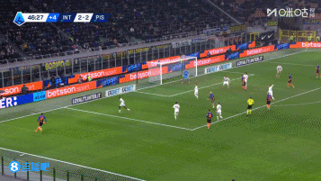 01月24日讯 意甲第22轮,国际米兰主场迎战比萨,上半场补时阶段,巴斯托尼传中皮奥头球,国米半场前完成反超3-2比萨。